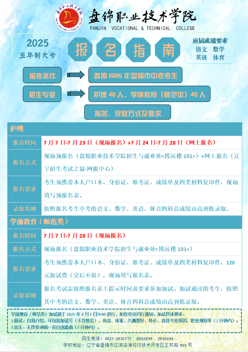 2025年盘锦职业技术学院五年制护理、学前教育(师范类)专业报名指南